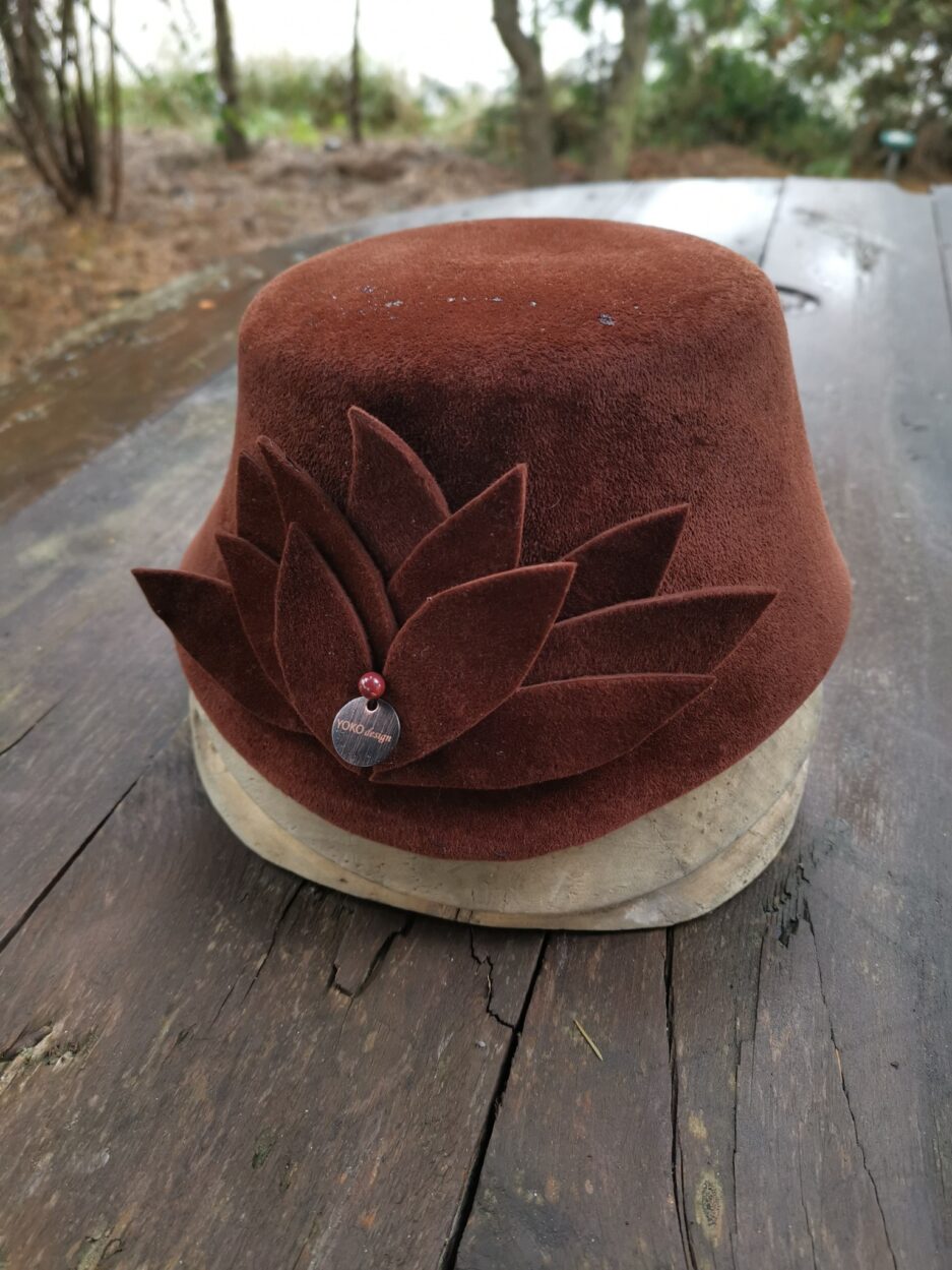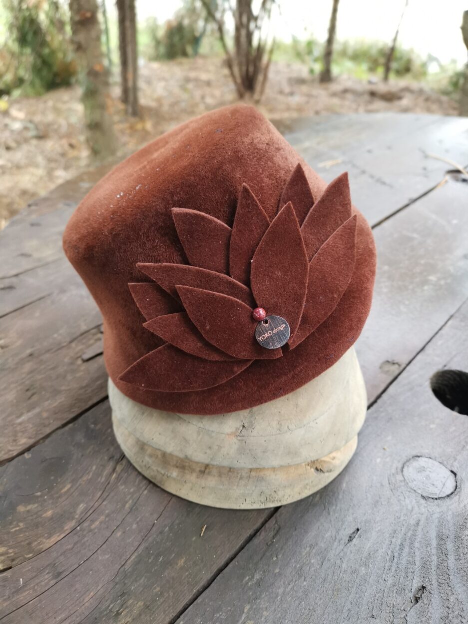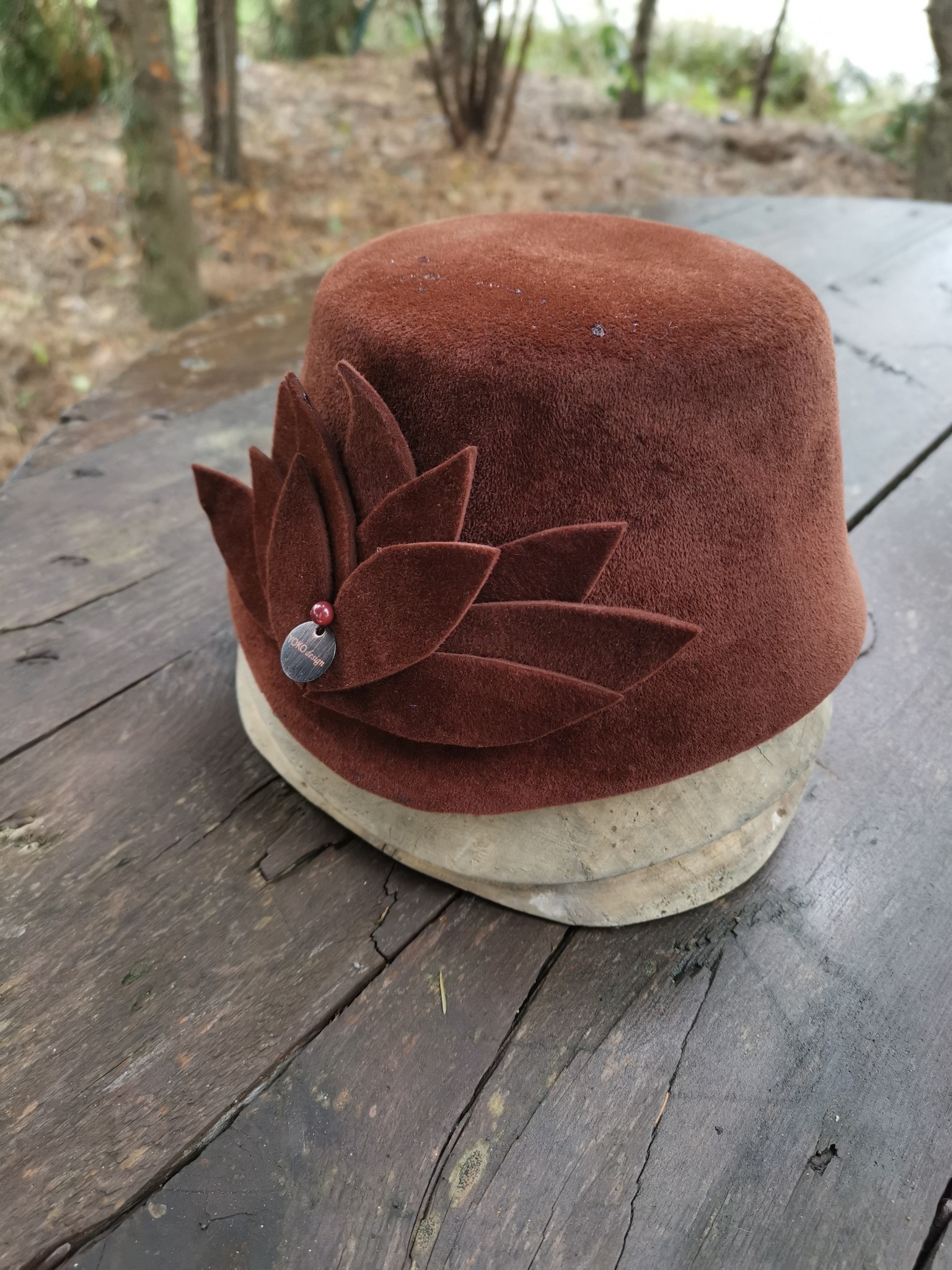 Kapelusik w stylu retro w kolorze czekoladowym. Wykonany ręcznie z filcu wełnianego, welurowego.